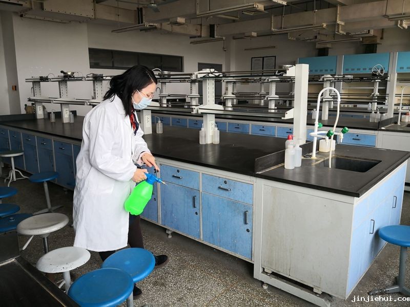 在学院的统一部署下,全体教师认真学习了疫情防控相关文件精神,4月24号前各实验分室负责人带领本组教师完成了对实验楼共计80余间实验室的全面防疫消毒、卫生打扫和安全大检查,排查安全隐患,确保用电和消防安全。消毒部位主要包括实验台、仪器柜、门、窗台、地面等,特别是对水龙头、门把手、日光灯开关等手经常触摸到的部位进行彻底消毒,做到不留死角。