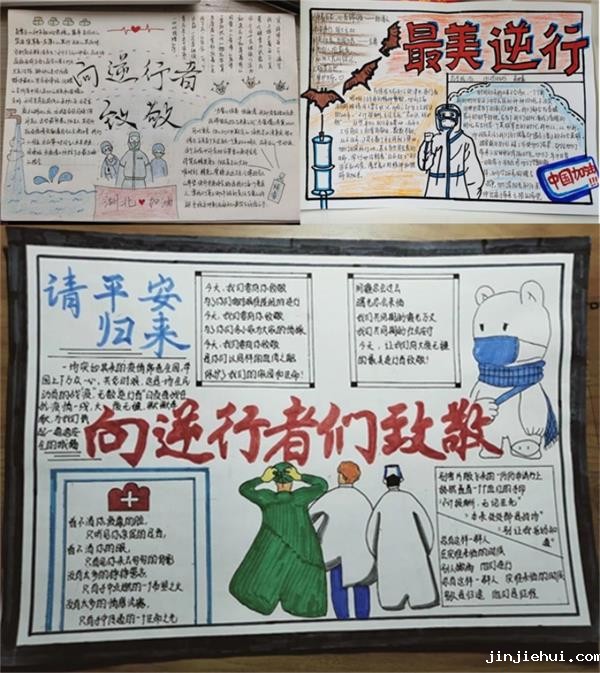 突发的新冠疫情,打断了全体师生原本返校学习工作的节奏。同学们在每天关注疫情变化的同时,也积极行动起来,用文字、书法、图片、绘画、手抄报等多种形式向逆行者致敬,为武汉为湖北加油,宣传普及疫情防控知识,描写亲情友情的可贵,畅谈对疫情过后美好生活的满心期待。此外,有的同学还用多种外国语言写下了衷心的祝福;有的同学结合之前拍摄的校园照片,用绘画的形式进行了临摹,表达了对美好校园生活的向往和期待。