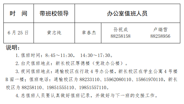 kaiyun手机网页版登录入口2020年端午节总值班安排表