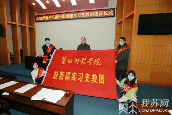 3月14日,荔枝网以《跨越3000多公里!盐城师院50名学子赴新疆实习支教》报道我校第24批赴新疆实习支教团出征仪式。