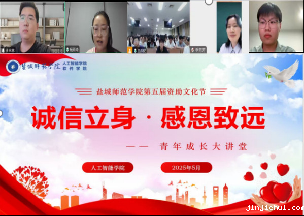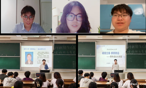 5月26日晚上,人工智能学院以线上线下结合的方式举办“诚信立身·感恩致远——青年成长大讲堂”活动。6位来自不同领域的优秀青年校友应邀分享个人成长故事,学院辅导员和受资助学生及大一、大二学生代表200余人参加活动。