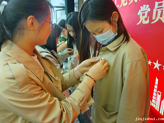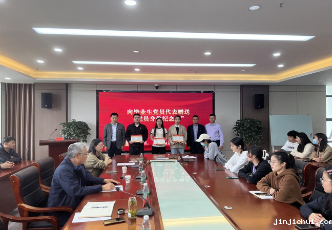 活动中,教师党员为毕业生党员代表佩戴党员徽章。闪亮的党徽,激发着党员的身份认同感和责任意识。学院领导为毕业生党员代表赠送“党员身份纪念卡”,希望每一位毕业生党员“不忘初心、继续前进”,时刻铭记“第一身份”,终身践行入党誓词。毕业生党员代表向学院党委递交了《毕业生党员决心书》,决心书镌刻入党誓词入党决心,所有毕业生党员都亲手签署姓名,留下对未来发展的决心。