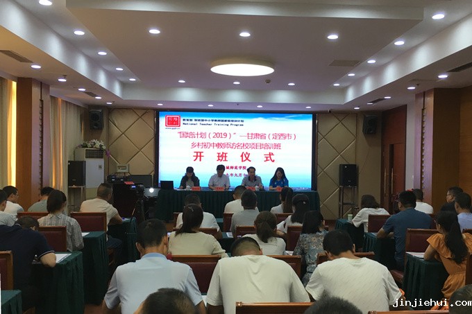 [成教网讯] 2019年9月18日上午,甘肃省(定西市)乡村初中教师访名校项目培训班在温泉宾馆举行。成教处(继续教育学院)党总支书记、副处(院)长孙晔、外国语学院副院长范能维、外国语学院教授李箭、教学班主任顾晓波等全体参训人员出席了此次开班仪式,仪式由顾晓波主持。