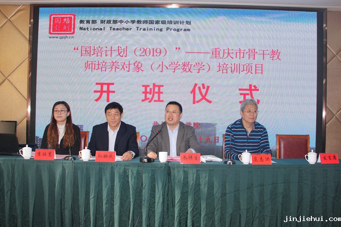 [成教网讯] 2019年10月29日上午,重庆市骨干教师培养对象项目小学数学培训班在温泉宾馆举行。成教处(继续教育学院)副院长朱祥生、重庆师大教授扈志洪、数学与统计学院教授孙映成、班主任李珏慧等全体参训人员出席了此次开班仪式,仪式由李珏慧主持。