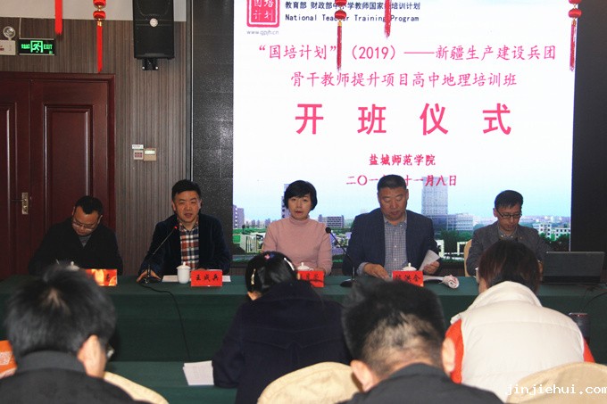 [成教网讯] 2019年11月8日上午,新疆生产建设兵团骨干教师提升项目高中地理培训班在我校通榆校区师苑宾馆举行。成教处(继续教育学院)院长王成兵、新疆生产建设兵团中小学教师培训中心培训部副主任胡月蓉、城市与规划学院院长陈洪全、城市与规划学院副院长王亮、教学班主任刘丙章等全体参训人员出席了此次开班仪式,仪式由刘丙章主持.