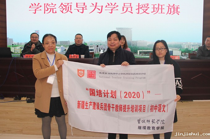 学院领导为培训班授班旗。最后新疆生产建设兵团教研室语文教研员李旻同志作讲话,开班仪式在热烈的掌声中结束。