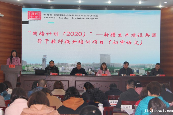 2021年3月4日上午,“国培计划(2020)”—新疆生产建设兵团骨干教师提升培训项目初中语文班开班典礼在我校通榆校区国培报告厅举行。新疆生产建设兵团教研室语文教研员李旻、继续教育学院副院长朱祥生、文学院副院长史成明教授、培训班班主任姚永明、王正兵及全体参训人员出席了此次开班仪式,仪式由姚永明主持。
