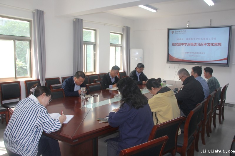 为深入学习贯彻习近平总书记重要指示和全国宣传思想文化工作会议精神,10月18日,成教处党总支组织开展“在实践中学深悟透习近平文化思想”主题党日活动。成教处全体教职工党员参加会议,会议由党总支书记韩诚主持。