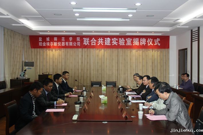 10月28日下午,我校与美国PerkinElmer公司联合共建实验室揭牌仪式在滩涂生物资源与环境保护重点建设实验室二楼会议室举行,美国PerkinElmer公司南中国区总经理朱兵、PerkinElmer公司南京分公司经理袁梅栋一行四人、我校崔刚副校长、学科建设办公室主任研究生处处长沐金华、科研处处长施一生、分析测试中心主任费正皓、教务处副处长刘忠权、区域服务与合作处副处长王振华等参加了揭牌仪式。