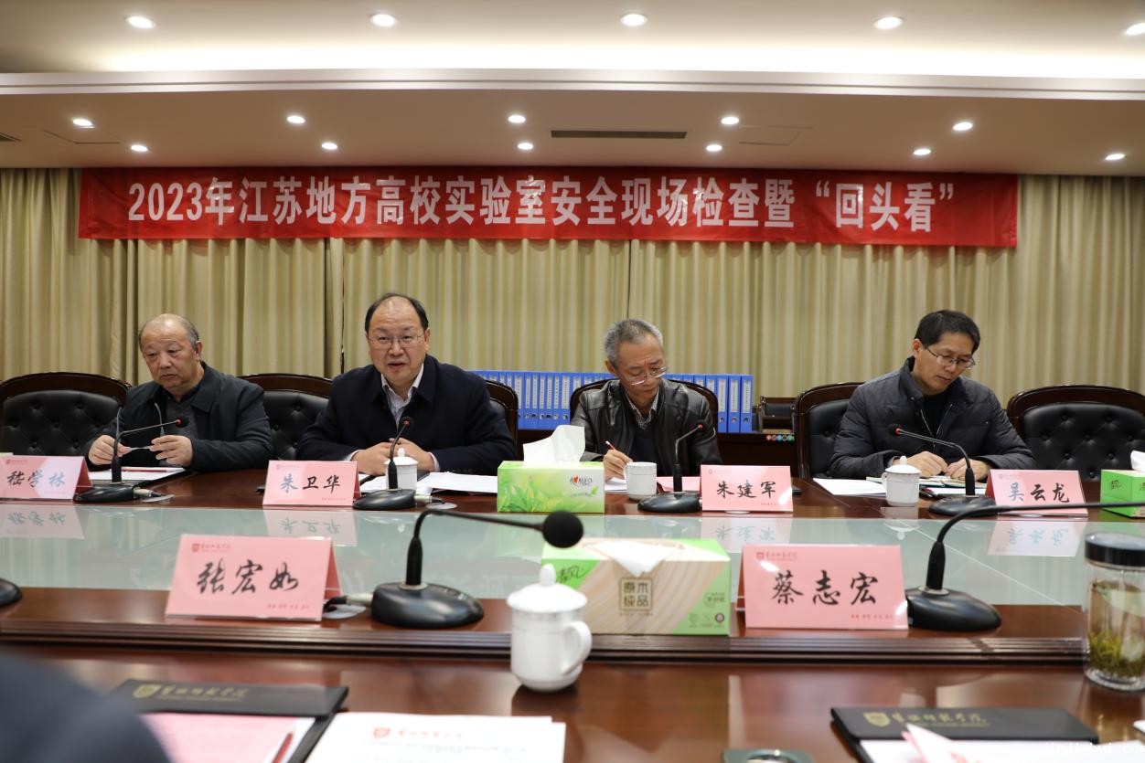 根据江苏省教育厅关于开展2023年高校实验室安全现场检查暨“回头看”工作统一部署,11月13日下午,由江苏大学实验室与设备管理处副处长朱卫华教授带队,省教育厅高校实验室安全专家组一行4人来我校开展实验室安全现场检查。党委副书记、校长张宏如、党委常委、副校长汤克明出席会议,国有资产与实验室管理处处长蔡志宏主持会议。