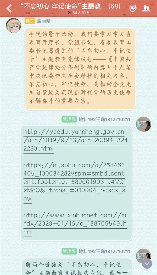 活动中,通过学习十九届中央纪委四次全会精神,观看省教育厅厅长、党组书记、省委教育工委书记葛道凯的“不忘初心、牢记使命”主题教育党课报告——《中国共产党纪律处分条例》,学生党员罗加威同学说:“遵守党纪党规要从现在做起,从自身做起,牢记信念,始终跟随党的步伐,今后要以更加严格的标准要求自己,做好表率。”