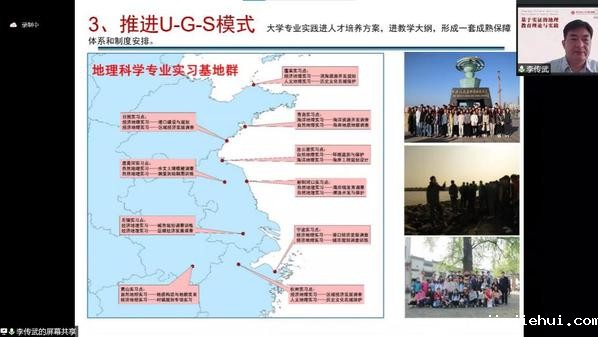 汇报期间,李传武与参会师生分享了我院地理科学(师范)专业的发展情况,重点介绍了地理科学专业的特色优势及未来发展规划,依托我院形成的覆盖长三角地区的地理科学专业实习基地群,为地理师范生制定了多样化的研学实践方案和路线,有效提升了地理师范生的综合竞争力。