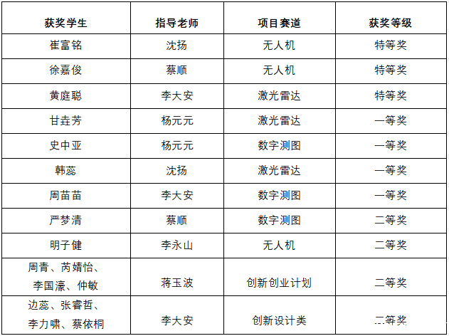 我校城市与规划学院测绘工程专业参赛学生成绩突出,共获奖11项,其中,特等奖3项、一等奖4项,二等奖4项,特等奖获奖数位列全省第四。其中,城22(6)班崔富铭与城23(4)班徐嘉俊荣获无人机航测赛道特等奖,城22(6)班黄庭聪荣获激光雷达赛道特等奖。此外,蔡顺、沈扬与李大安老师荣获优秀指导老师。