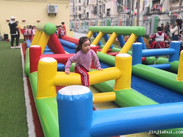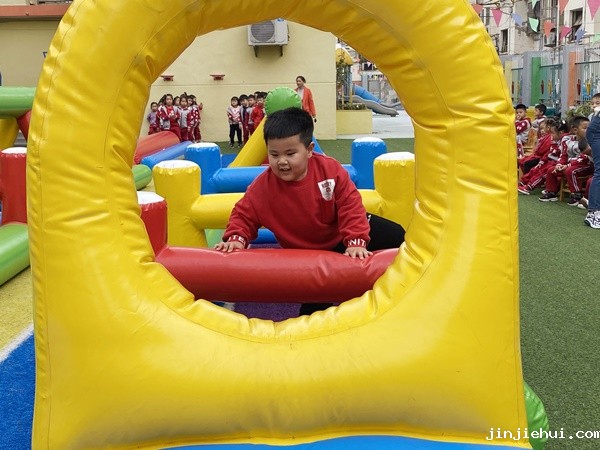 本次运动会分两场,在上场的单人项目《穿衣秀》《滚球》《赶鸭过河》中,孩子们不仅要比跑的速度,还看谁的动作技能好;《钻山洞》中,孩子们学会钻爬;《极速障碍赛》《快乐翻转》中孩子们要克服跳圈、钻爬、平衡、跳跃、翻滚等重重困难才能获取最后的胜利。下半场的小组赛中,孩子们团结一心、通力合作,比赛成绩不分上下。看着有趣的道具、热闹的场面,老师们也忍不住组队加入到比赛中。