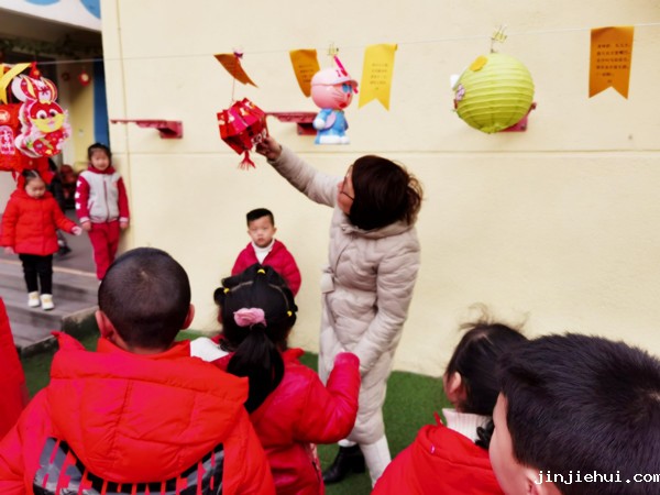上午入园时,孩子们兴高采烈地拎着亲子制作或购买的花灯走进教室。集体活动中,各班老师向孩子们讲述《元宵节的来历》,介绍元宵节的传统习俗,让孩子们观看《汤圆的故事》、学念儿歌《元宵节》。
