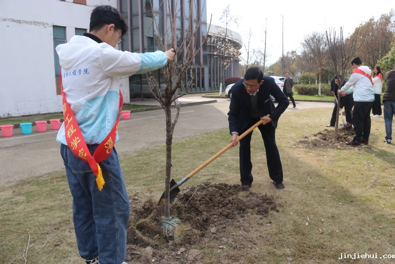 在植树过程中,戴斌荣、方忠与师生亲切交谈,了解到参加植树活动的都是大一新生,鼓励同学们爱绿护绿,与自己亲手栽下的小树共同成长,共同进步。