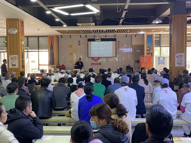 2021年4月16日下午,饮食服务中心组织食堂从业人员在沁园食堂二楼开展消防安全知识培训。本次培训以“关注消防、生命至上”为主题,并特邀盐城恒泰消防张军教官担任主讲,中心工作人员以及食堂、餐饮企业从业人员两百余人参加培训。