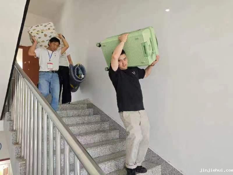 为切实解决毕业生在校内搬运行李难的问题,后勤党总支积极谋划,根据毕业生在各宿舍楼的分布情况,结合志愿者的运力实际,分别在两个校区宿舍楼各设了2到3个服务点,每个服务点安排5至8名志愿者协助搬运行李,同时各安排2辆三轮车专门负责接驳运送。需要协助搬运行李的毕业生大多住在较高楼层,这就意味着志愿者需要频繁上下楼梯,这对于年纪较大的后勤人来说是个不小的挑战。但只要毕业生有需要,志愿者们就会立即前往,中午温度高达31℃,搬运、接驳的脚步也依然没有停歇。汗水将志愿者们的衣衫浸透,换来的是毕业生们的一句句感谢和发自内心的感动。