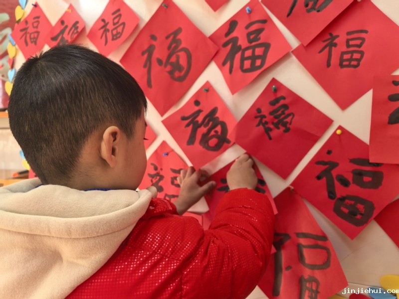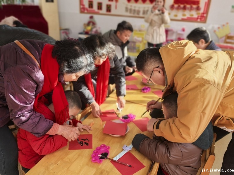 亲子写福 福在心中 在创作室里,老师早早放好纸张、笔墨,有独自创作,有家长握住孩子的手一起创作。大家一笔一划,认认真真地写“福”字、贴“福”字,福在心中,其乐融融。