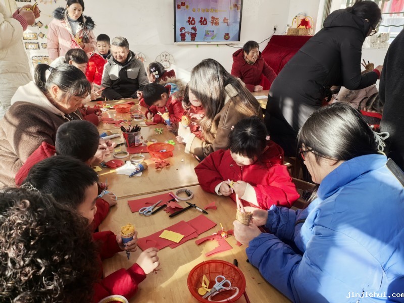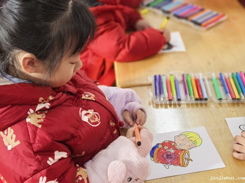 巧手制作 沾沾福气 美工室里,画一画、贴一贴、剪一剪、涂一涂,大家一起沾沾“福袋”“福娃”带来的福气,好开心哦!