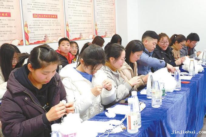志愿者们首先观看了视频学习如何制作拓包,随后每一位志愿者小心翼翼地裁剪棉布、包扎棉球、捆扎拓包,当天现场制作拓包252个。