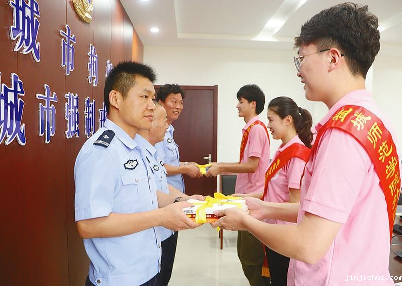 盐城晚报讯 7月9日下午,kaiyun手机网页版登录入口外国语学院“守护花季青不‘毒’行”志愿服务团队的大学生们,走进市强制戒毒所,为戒毒人员赠送书籍,以激励戒毒人员早日戒毒,回归社会。