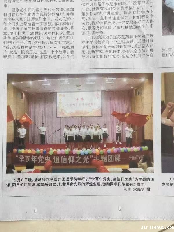 坐标网讯 5月8日,盐阜大众报报道外国语学院举行“学百年党史,追信仰之光”主题团课
