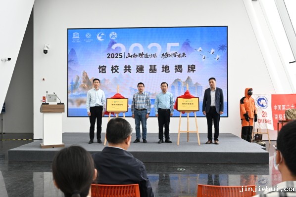 曹雷与朱京凤共同为“馆校共建基地”揭牌。朱京凤在致辞中简要介绍我校近年来校地合作成果,并从建设科研创新共同体、打造文化育人共同体、构建产教融合共同体等方面对馆校合作提出期许。他强调,在生态文明建设新征程上,大学和博物馆肩负着普及湿地知识、传承湿地人文历史、保护修复湿地生态、促进可持续发展的共同使命。馆校合作是盐城所需和盐师所能的“双向奔赴”,推进教育链、创新链、产业链的深度融合,共同书写校地合作新篇章。