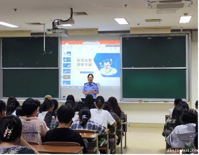 9月18日,学院与共青团亭湖区委共同邀请亭湖区公安局侦查中心李警官,为学院新生讲授反诈“公开课”。她从学生受诈骗的真实案例和数据切入,通过探讨受害人认知和心理特点、电诈背后灰黑产结构等核心因素,剖析诈骗与受骗行为的本质,进一步加强新生对电信网络诈骗套路的认识。