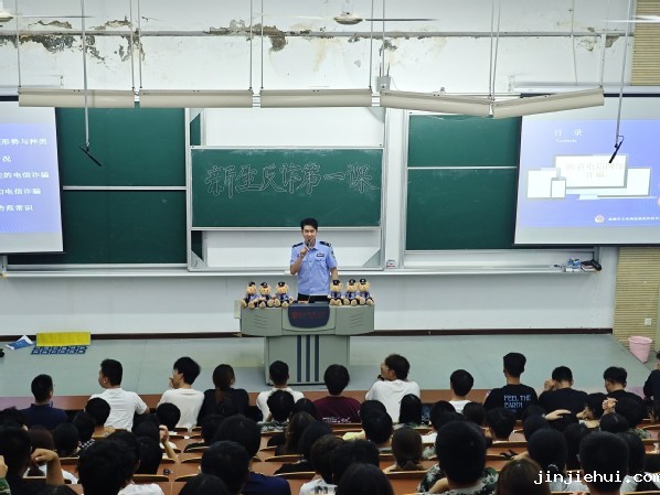 9月25日,湿地学院联合海洋与地理科学学院、创新创业学院在公共教学楼C201举办反诈骗知识专题讲座。盐城经济技术开发区新城派出所反诈民警朱津苇应邀主讲,2025级全体新生参会。