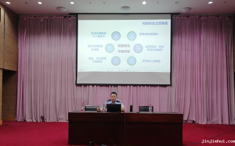 学院邀请盐城市公安局亭湖分局刘警官为学生作“高校安全防范”反诈主题报告。他结合真实诈骗案例拆解网络诈骗套路,系统阐述网络诈骗的常见类型,增强广大师生预防诈骗意识和自我防范能力。