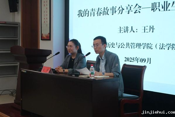 9月26日下午,历史与公共管理学院(法学院)特邀优秀校友、江苏师范大学公共管理与社会学院王丹副教授在法律服务学院报告厅举办青春故事分享会之职业生涯规划指导讲座,学院副院长吉鹏主持分享会。