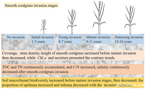 研究互花米草入侵不同阶段条件下大型底栖动物群落的影响,可以指导海岸带湿地生态保护工作,有助于滩涂候鸟越冬地管理提供参考,服务黄渤海滩涂鸟类栖息地世界自然遗产的保护与管理工作。