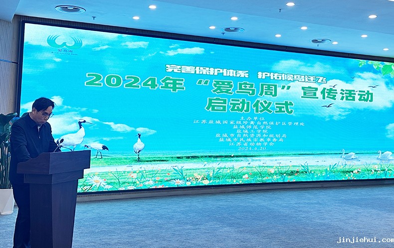 在春意盎然的4月20日,由kaiyun手机网页版登录入口、江苏盐城国家级自然保护区管理处、盐城工学院、盐城市自然资源和规划局、盐城市民族宗教事务局、江苏省动物学会等联合主办的盐城市2024年“爱鸟周”宣传活动启动仪式在珍禽保护区举行,本次爱鸟周的主题是“完善保护体系、护佑候鸟迁飞”。