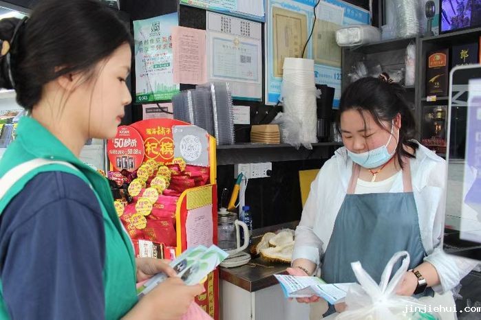 青年志愿者们在参观结束后,向周边的商贩发放环保宣传资料和"高考、中考"禁噪倡议书,宣传讲解生态环保相关法律法规及绿色生活科普知识,多形式广泛传播生态文明理念,让保护环境成为全社会的自觉行动。