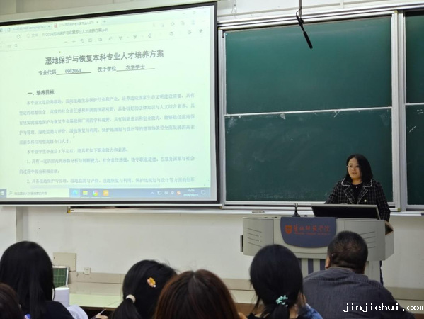 占水娥首先带来了一场关于湿地保护与恢复专业的精彩介绍。她不仅全面而细致地阐述了该专业的课程设置,还突出了其系统性和科学性。她强调了湿地保护在当今生态环境中扮演的关键角色,并通过生动的案例,向新生们展示了湿地保护工作的实际场景和深远意义,使同学们深刻感受到他们所学专业的重要性和肩负的使命。