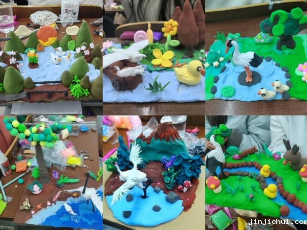 18个参赛队伍以超轻粘土为主要材料,自主发挥想象力与创造力,在一小时内精心雕琢心中的湿地景观。选手们用灵巧的双手塑造出一件件生动的湿地画卷,作品从细腻的纹理塑造、色彩的巧妙搭配等细节彰显出选手们对湿地生态的深刻理解与感悟。