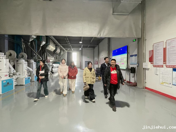 实践团首站来到育龙米业。这家当地粮食产业的龙头企业,集稻谷收购、加工、销售于一体,凭借先进设备和成熟工艺,为传统稻米产业注入新活力。实践团成员在企业负责人带领下,参观了原粮仓储区、现代化加工生产线和成品包装车间。从稻谷筛选到包装出厂,高度自动化的生产流程让同学们惊叹不已。成员们还与技术人员交流,了解到企业在节水灌溉、绿色防控等新技术的应用,深刻体会到科技创新对传统农业的巨大推动作用,而这正是乡村产业振兴的关键动力。