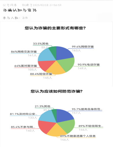 学院通过问卷调查、随机谈心谈话等形式,精准掌握学生反诈认知薄弱点。数据显示,学生对传统诈骗类型认知较好,但对AI精准诈骗等新型手段防范意识不足。未来将增设专家讲座、反诈微视频创作大赛,并推出“求职防骗指南”专题,强化针对性教育。