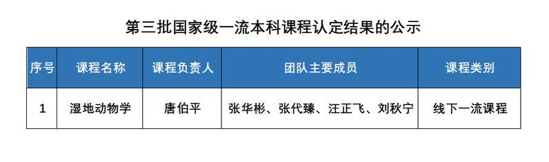 喜报 | 我院《湿地动物学》课程成功入选第三批国家级一流本科课程