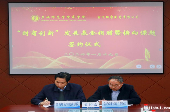 为充分发挥校企双方优势,进一步做好校企合作,促进资源共享与整合,推进我校产学研高质量发展,1月19日,我校宿迁校友会会长、1983届财会专业校友、宿迁瑞康医药有限公司董事长李想向学院捐赠100万设立“财商创新发展基金”,支持学院搭建产学研融合发展高层次平台,用实际行动支持母校发展,回馈教育。