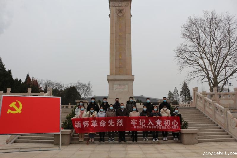 坐标网讯 日前,物理与电子工程学院党委在盐城烈士陵园举办2020年秋学期新发展党员入党宣誓仪式。物理与电子工程学院党委副书记、副院长雷承富,辅导员刘志和2020年秋学期新发展的党员参加本次活动。