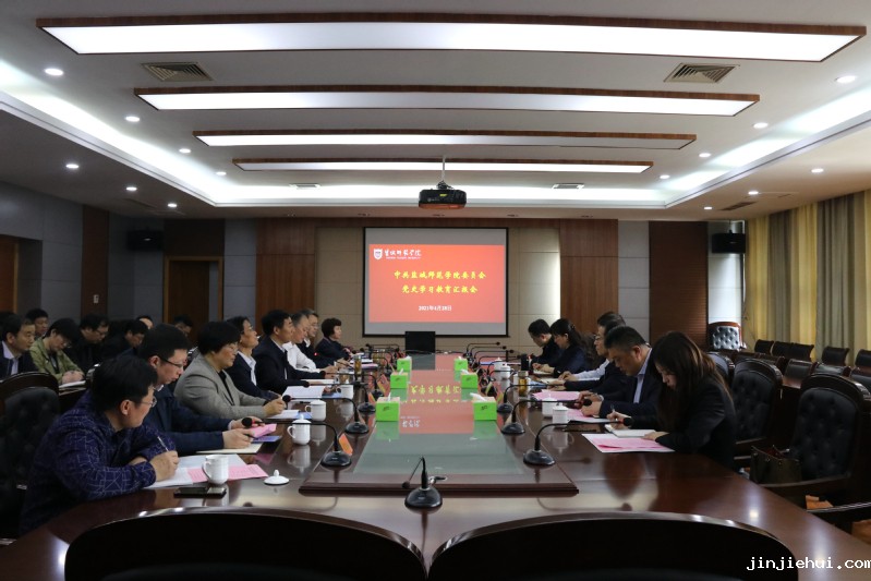 党委书记戴斌荣就我校党史学习教育开展情况进行了专题汇报。他从提高政治站位、推动党史学习教育有高度,发挥专业优势、推动党史学习教育有深度,用活红色资源、推动党史学习教育有广度,注重学用结合、推动党史学习教育有效度,坚持特色品牌、推动党史学习教育有力度等五个方面介绍了我校党史学习教育的开展情况、特色做法和阶段性成效。戴斌荣表示,学校党委将继续把学懂弄通做实习近平新时代中国特色社会主义思想贯穿始终,把学史明理、学史增信、学史崇德、学史力行贯穿始终,把学党史、悟思想、办实事、开新局贯穿始终,牢牢把握党史学习教育的目标方向,不折不扣地完成规定动作,结合实际创新自选动作,做到党史学习教育与推动“十四五”开局之年学校事业高质量发展,与落实常态化疫情防控,与“不忘初心、牢记使命”主题教育常态化紧密结合,统筹推进。