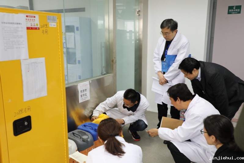 专家组分三组开展实验室安全检查工作,一组在会议室检查实验室安全管理工作档案和台账等资料,并现场询问。其余两组分别到化学与环境工程学院、海洋与生物工程学院、药学院、湿地学院等单位的实验室进行实地安全检查,重点检查了危险化学品使用安全专项治理信息系统填报、实验室安全自查自纠与隐患整改落实、实验室准入机制的建立,校园安全文化建设、专业安全知识培训宣传、实验室安全演练与应急能力建设、危险化学品采购、运输、存储、使用、处置等环节的管理、实验室危险废物暂存及处置等。