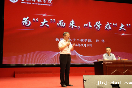 孙伟以《为“大”而来,以学求“大”》为题与新生交流。他从“何谓‘大学’”这一主题出发,介绍了“大学”的发展演变和“大学精神”的丰富内涵,希望新生从“小我”走向“大我”,尽快完成思想上的成长。他还详细阐述了大学“大”在何处,并从学会学习、学会思考、学会守规、学会生活等方面希望新生系统学习、全面成长,成大才,担大任,让青春在为祖国的不懈奋斗中绽放绚丽之花。