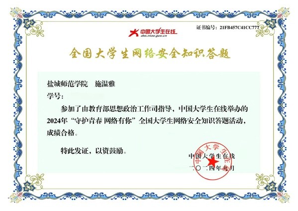 法学院组织同学们参加“守护青春,网络有你”全国大学生网络安全知识答题活动。同学们纷纷通过线上方式参与到答题队伍中来,答题内容涵盖网络诈骗识别、个人信息保护、安全上网习惯养成等多个方面。此次活动使同学们在享受答题乐趣的同时,深化了对网络安全的理解与认识,深刻意识到网络安全关系到每个人的切身利益,大家要一同守护!